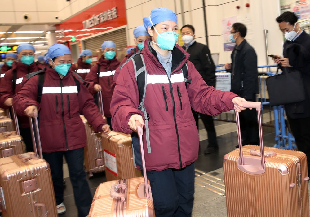 2月19日,在深圳灣口岸,援港抗疫醫療防疫工作隊過關。(新華社記者 李鋼 攝)