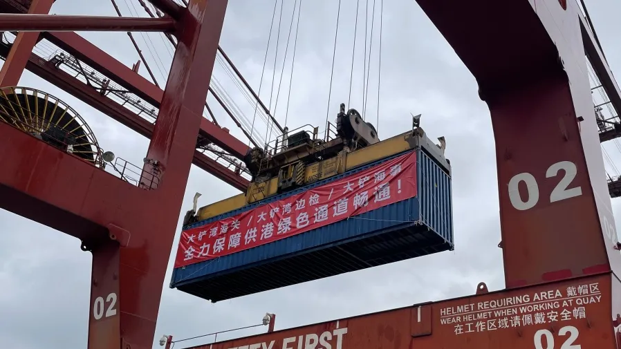 2月21日18時30分,隨着滿載200噸供港蔬菜的駁船從深圳大鏟灣碼頭駛航香港,深圳港大鏟灣、媽灣和鹽田集裝箱港區全面開通供港物資水路運輸快速通道,保障香港同胞生活物資供應。