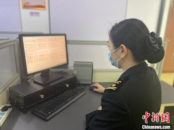 增城海關關員在對供港蔬菜報檢單進行審核。(湯曉瑜 攝)