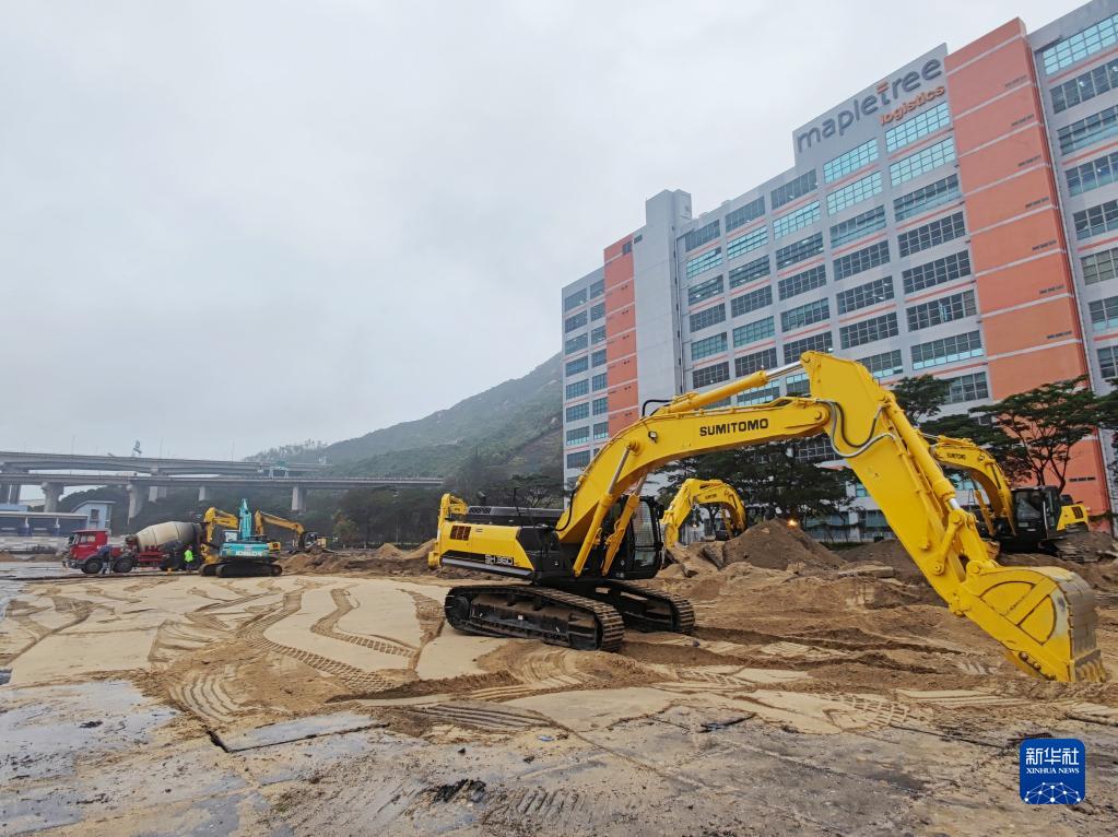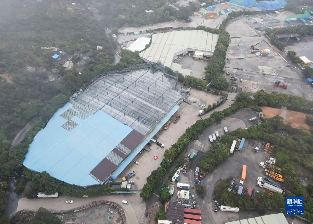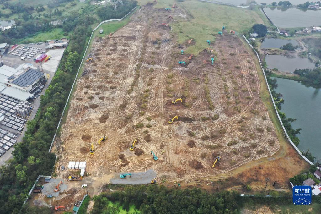 2月22日拍攝的香港元朗潭尾臨時性社區隔離治療設施建設現場。(新華社發)