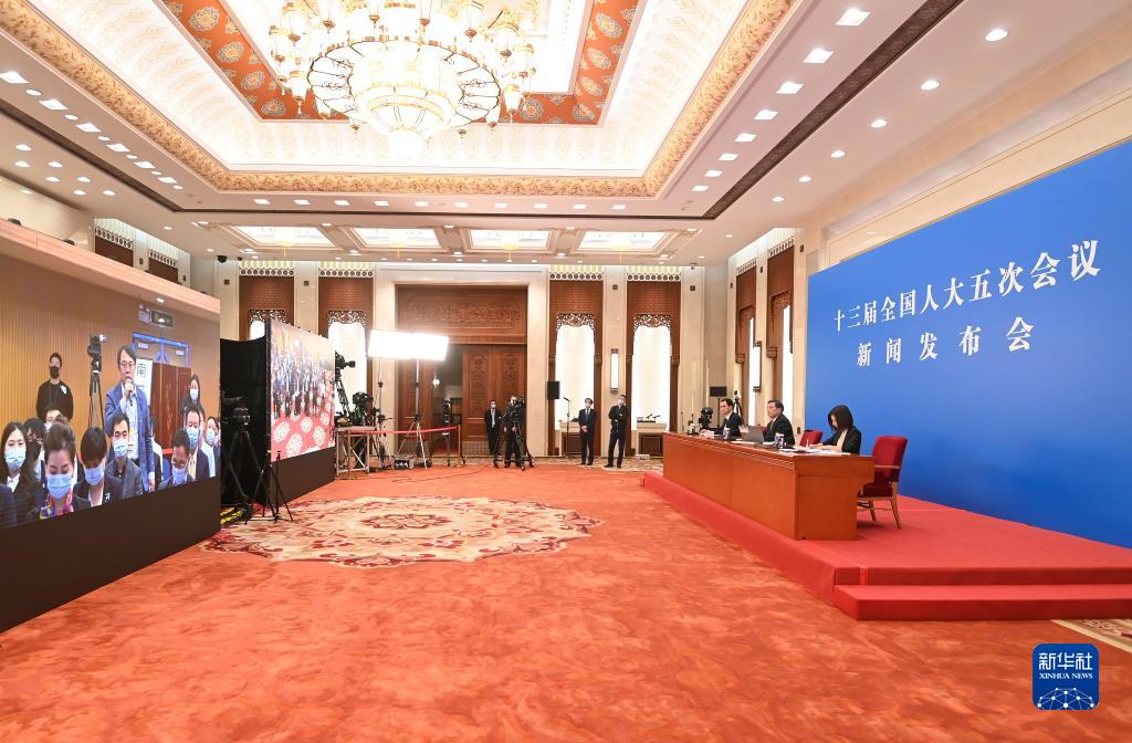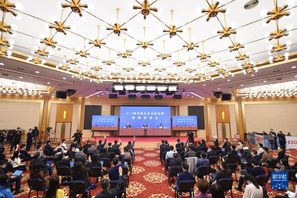 3月4日,十三屆全國人大五次會議新聞發布會在北京人民大會堂新聞發布廳舉行,大會發言人張業遂就會議議程和人大有關工作回答中外記者提問。(新華社記者 陳曄華 攝)