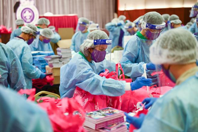 香港童軍總會義工包裝抗疫包。(圖片來源:青少年抗疫連線)