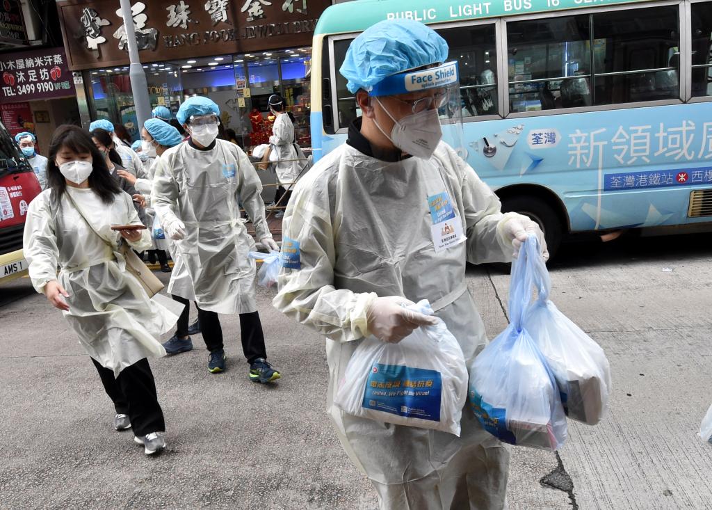 香港特區政府4月2日開始向全港市民免費派發350萬個「防疫服務包」。香港社會各界積極響應特區政府的號召,1.7萬多名義工參與服務包包裝工作,各界機構踴躍捐資捐物,凝心聚力共抗疫情。