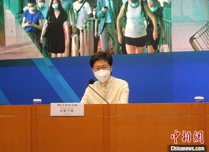 4月14日,香港特區政府宣布,將於4月21日起分階段放寬社交距離措施。香港特區行政長官林鄭月娥在抗疫記者會上表示,有關決定已平衡各方考慮,呼籲市民繼續遵從相關防疫規定。圖為林鄭月娥出席抗疫記者會。 (中新社記者 張曉曦 攝)