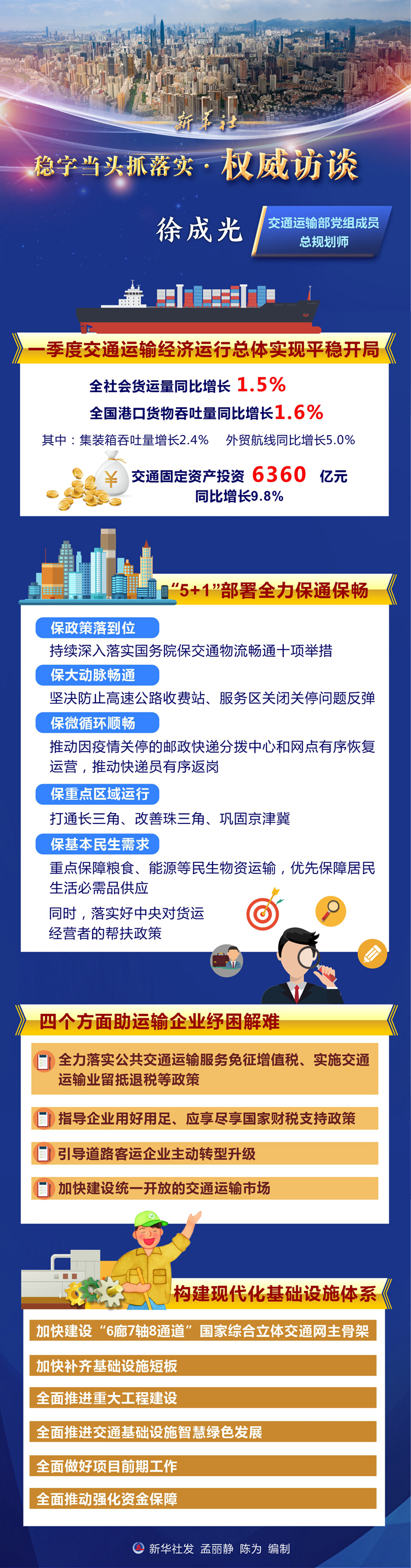 多重挑戰下,如何推進物流保通保暢?交通基礎設施建設進展如何?如何幫助企業和運輸經營者渡過難關?近日,交通運輸部黨組成員、總規劃師徐成光就社會關注熱點接受新華社記者採訪。
