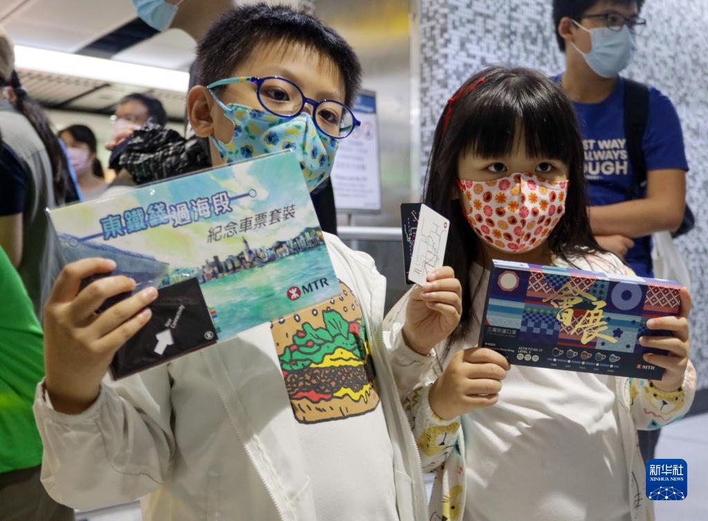 這是5月15日在會展站外拍攝的等待搭乘「首日特別班」列車的香港市民。(新華社發)