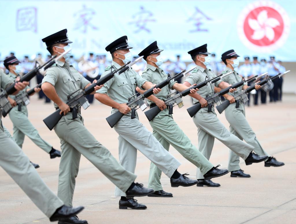艷陽晴空的一天,記者來到香港警察學院。擔任升旗手的警員們操練着中式步操,正在為即將到來的香港回歸祖國25周年紀念日升旗儀式進行演練。25年來,每個7月1日的升旗都由香港警隊負責。