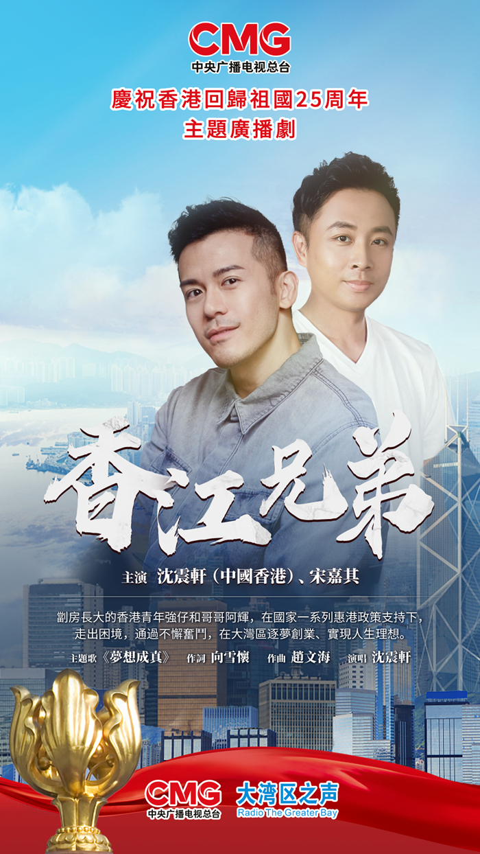 此外,由香港演員沈震軒和內地演員宋嘉其主演的主題廣播劇《香江兄弟》(粵語/普通話兩版),也將於6月下旬在總台大灣區之聲、香港電台等廣播平台播出,新媒體平台同步上線。