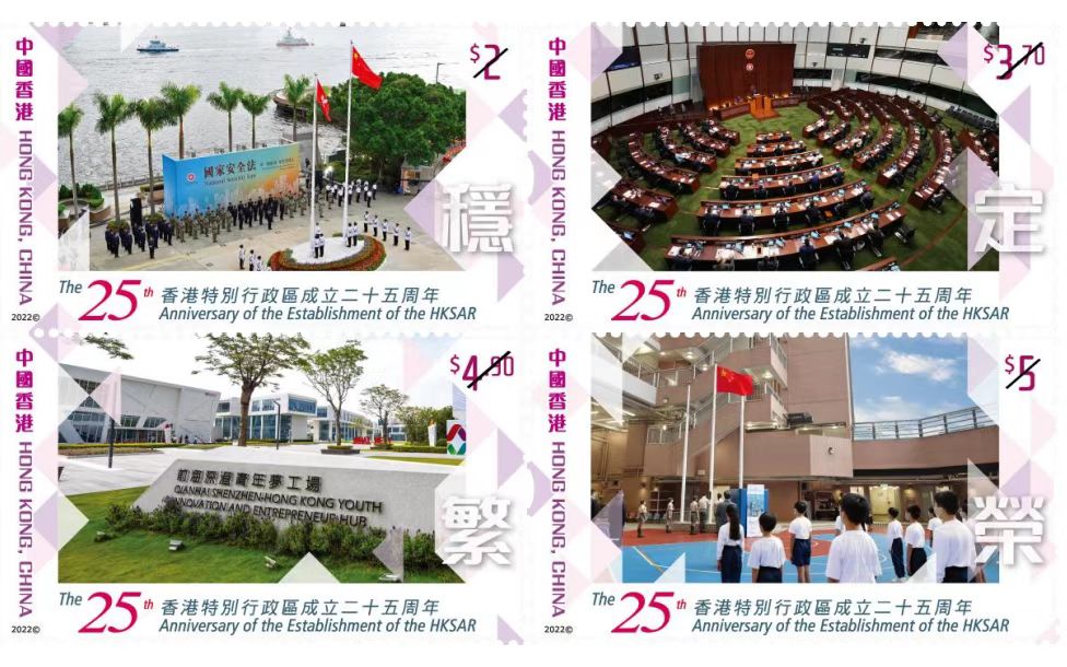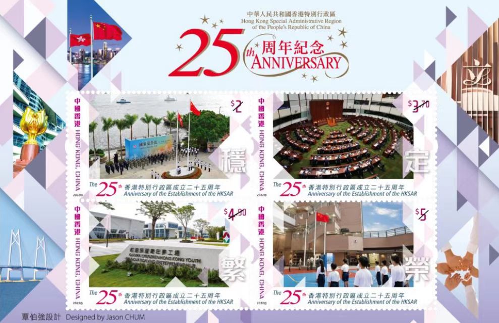 為紀念香港特別行政區成立25周年及中國人民解放軍進駐香港25周年,香港郵政特別發行紀念郵票展現香港的繁榮發展。