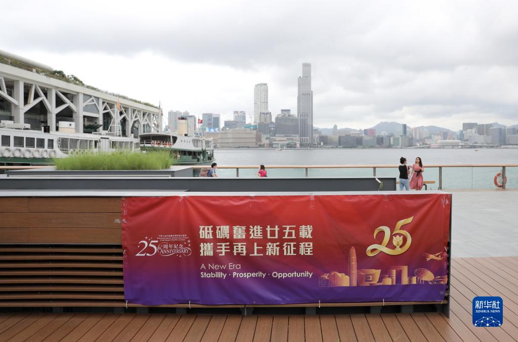 隨着香港回歸祖國25周年紀念日臨近,喜慶的紅色遍佈城市的街頭巷尾。(新華社記者 吳曉初 攝)