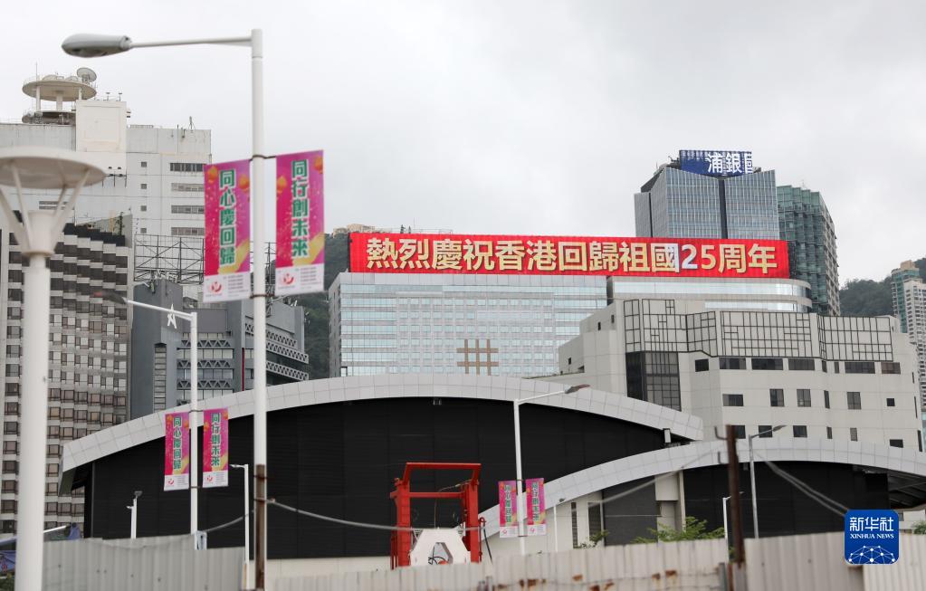 隨着香港回歸祖國25周年紀念日臨近,喜慶的紅色遍佈城市的街頭巷尾。(新華社記者 吳曉初 攝)