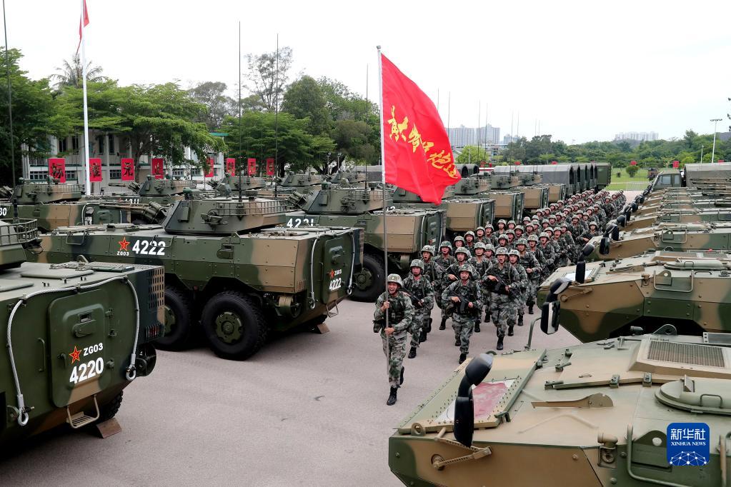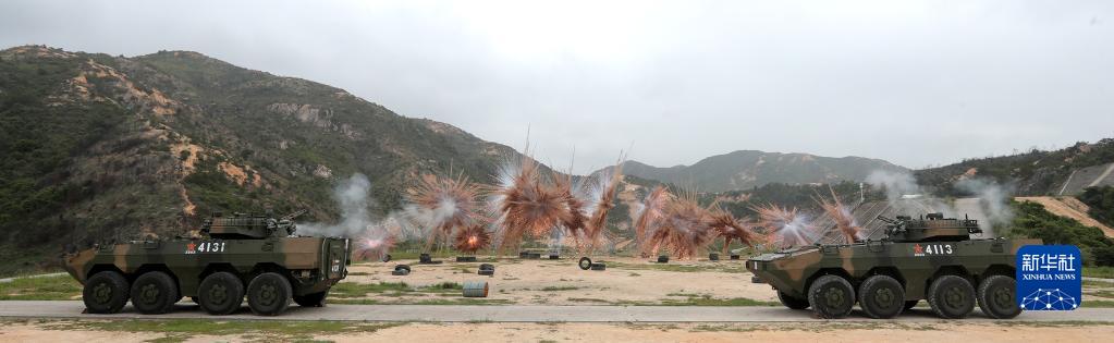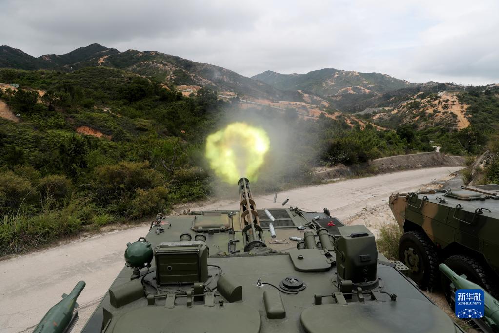 駐香港部隊某旅裝步一連組織人車協同訓練(5月24日攝)。新華社發(易定 攝)
