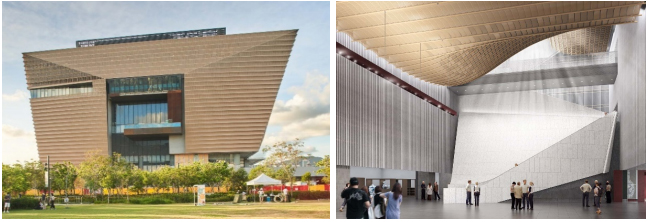 香港故宮文化博物館外觀(左)、香港故宮文化博物館內景(右)。(圖源香港故宮文化博物館)