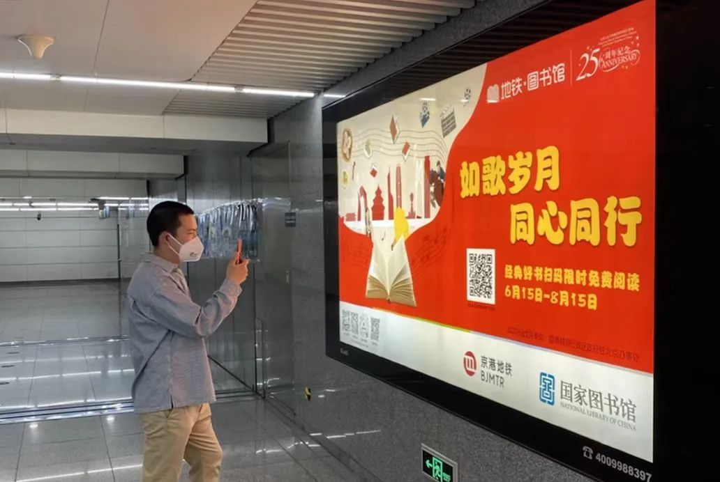 為慶祝香港回歸祖國二十五周年,京港地鐵和國家圖書館合作,攜手香港特區政府駐京辦共同推出「M地鐵•圖書館」公益文化閱讀推廣項目。推廣項目以「如歌歲月,同心同行」為主題,向乘客推薦十本精品電子書,豐富出行體驗,體會閱讀的快樂。