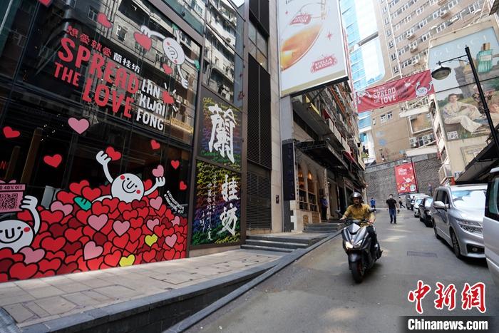 圖為盛智文漫步蘭桂坊。(中新社記者 羅嗣昱 攝)