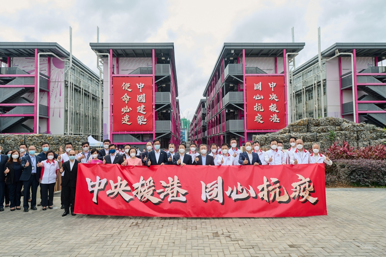 本網訊 6月21日,由中建國際承建的中央援港竹篙灣及啟德社區隔離設施舉行竣工交付儀式。香港中聯辦副主任尹宗華出席儀式並致辭。國務院港澳辦交流司副司長劉文達,香港特區政府發展局局長黃偉綸、食衛局局長陳肇始、保安局局長鄧炳強、建築署署長何永賢等出席。