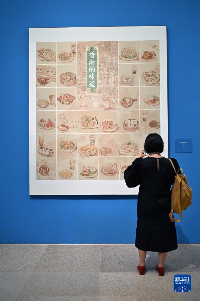 6月24日,參觀者拍攝參展作品《香港的味道》。(新華社記者 李鑫 攝)