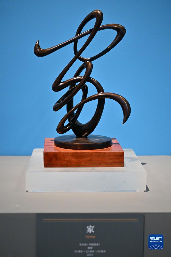 這是展出的雕塑作品《家》(6月24日攝)。(新華社記者 李鑫 攝)