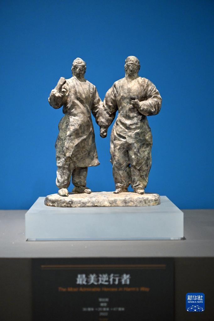 這是展出的雕塑作品《最美逆行者》(6月24日攝)。(新華社記者 李鑫 攝)