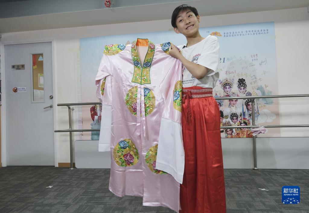 五年過去,利文喆長高了、長大了。他拿出當年給習爺爺表演時穿的戲服,一件粉色底上繡有紅藍色團花的披風疊得整整齊齊。他説,雖然這件戲服小了,穿不進去了,但是習爺爺當年的鼓勵,一直陪伴着他成長,見證着他在粵劇表演上取得的一個又一個進步。