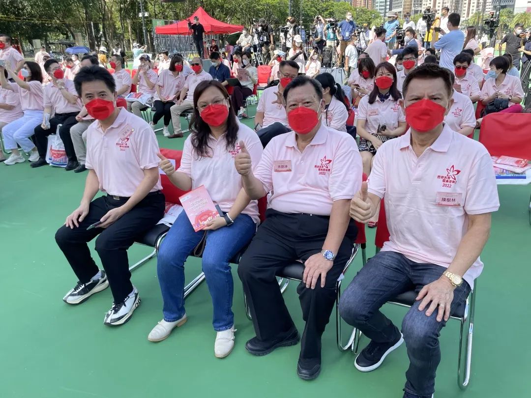 出席的主禮嘉賓包括民政事務總署署長張趙凱渝、中聯辦社會工作部副部長張昭、九龍工作部副部長祝小東、新界工作部副部長李功勳、港島工作部社工處處長溫汝恩以及香港各界慶典委員會籌委會會長陳鴻道等。香港深圳社團總會常務副會長陳樹林亦出席了本次活動。
