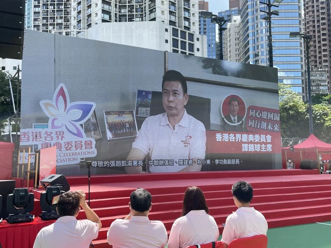 香港各界慶典委員會主席譚錦球通過視像錄影致辭時表示,過去幾年,香港面對前所未有的挑戰。但前有風浪,後有港灣,中央堅持貫徹落實「一國兩制」方針,果斷出手穩住香港大局。制定香港國安法、落實「愛國者治港」原則、完善香港選舉制度,無不體現着中央保持香港繁榮穩定的堅定決心以及對香港民生福祉的堅決維護。