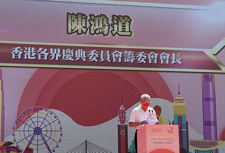 香港各界慶典委員會籌委會會長陳鴻道致辭時表示,回歸祖國25年的香港,正像年輕人一樣意氣風發,因此也更應堅定對「一國兩制」和香港前景的信心,讓市民安居樂業,讓社會團結共融,還應更加積極融入國家發展大局,共同實現中華民族偉大復興的中國夢。