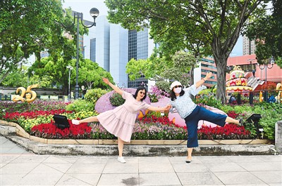 香港尖沙咀中心附近的街道洋溢着熱烈喜慶的氣氛。(香港中通社供圖)