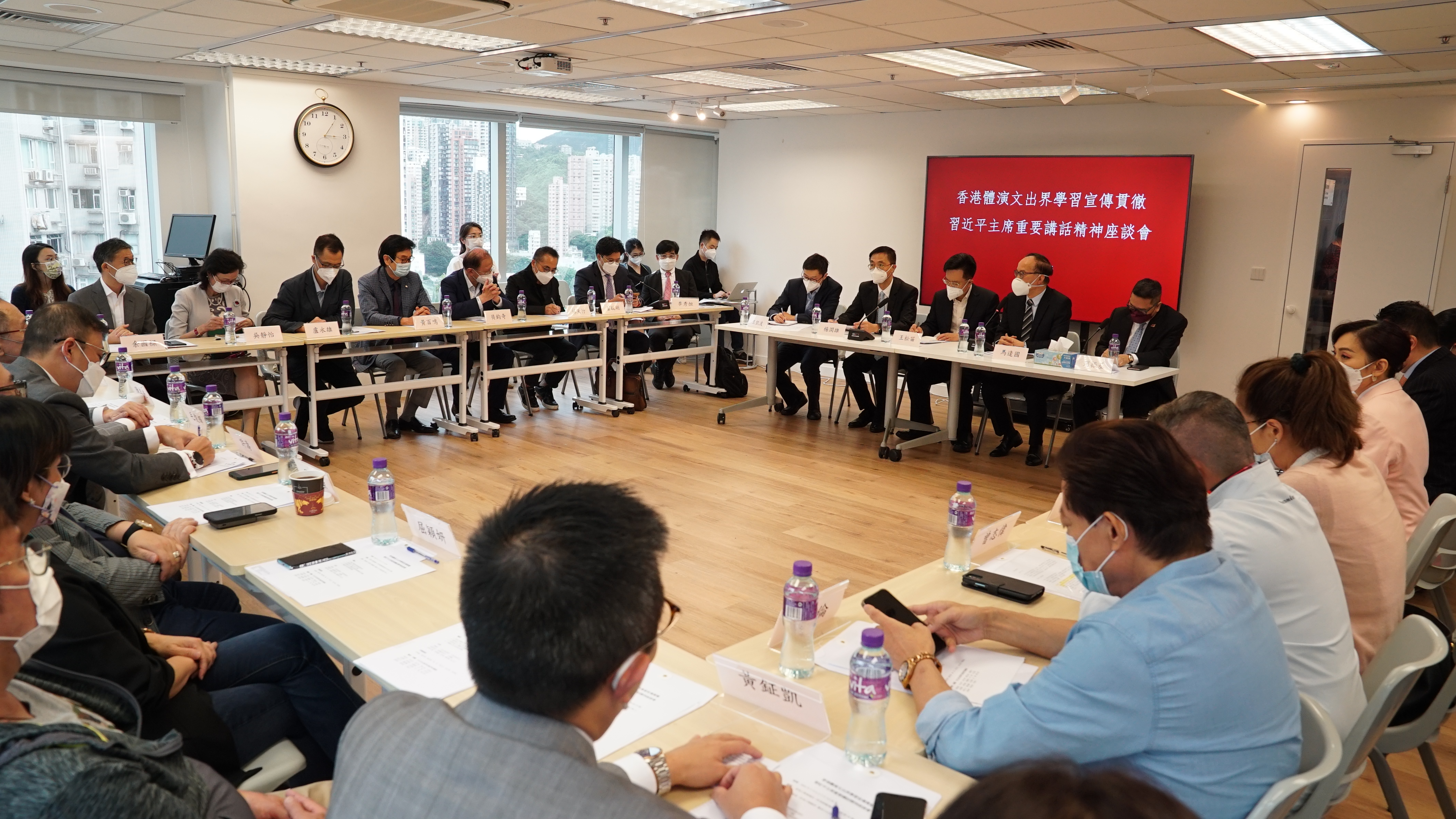 本網訊 7月6日下午,香港體育演藝文化出版界舉辦學習宣傳貫徹習近平主席重要講話精神座談會。中央政府駐港聯絡辦秘書長王松苗、特區政府文化體育及旅遊局局長楊潤雄出席並發言,香港文聯總會會長馬逢國、體演文出及特邀選委等共30餘人參加。