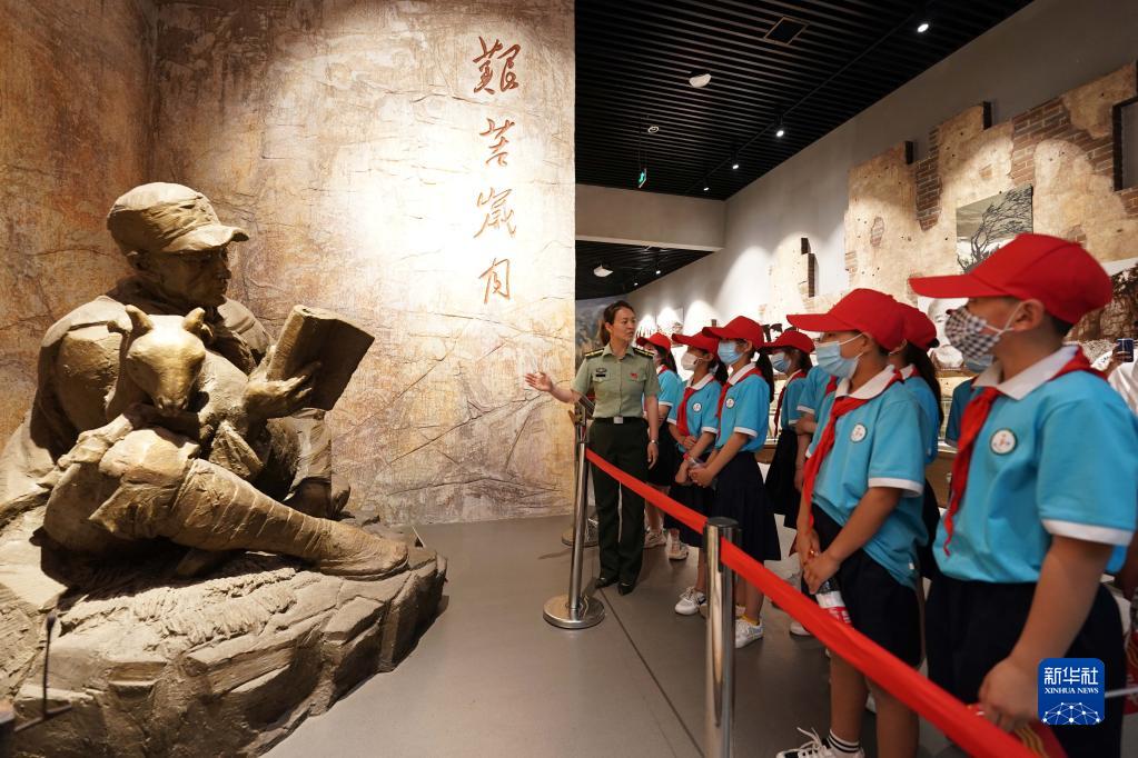 2021年5月30日,在位於河北省邢台市信都區漿水鎮的中國人民抗日軍政大學陳列館,工作人員向小學生們講述抗大歷史。(新華社記者 牟宇 攝)