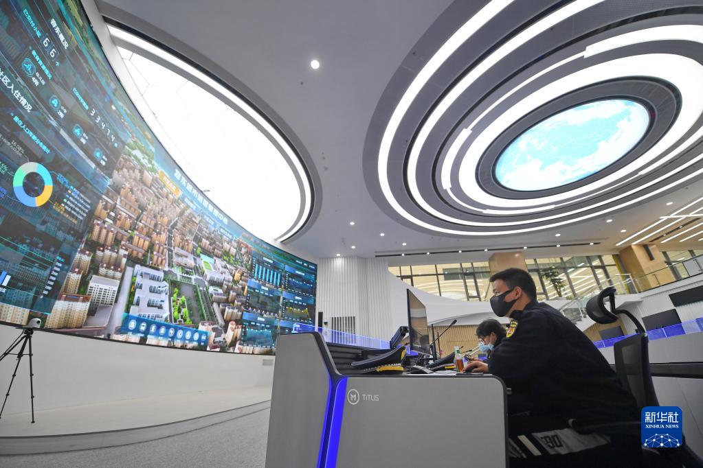 2022年3月29日,工作人員在雄安新區容東城市運營管理中心監管平台工作。(新華社記者 朱旭東 攝)