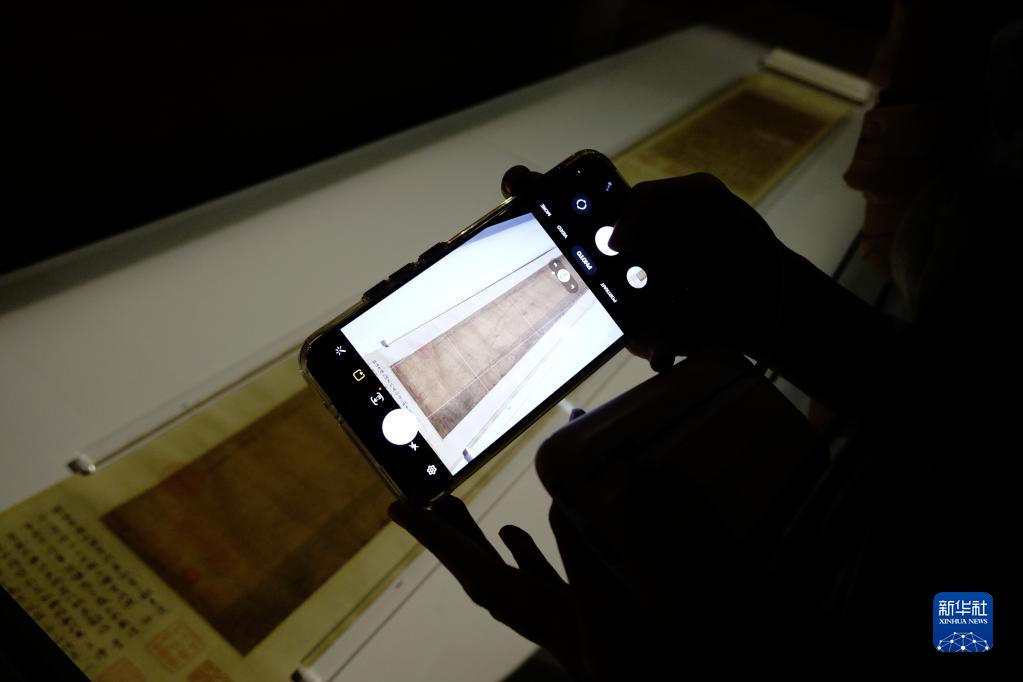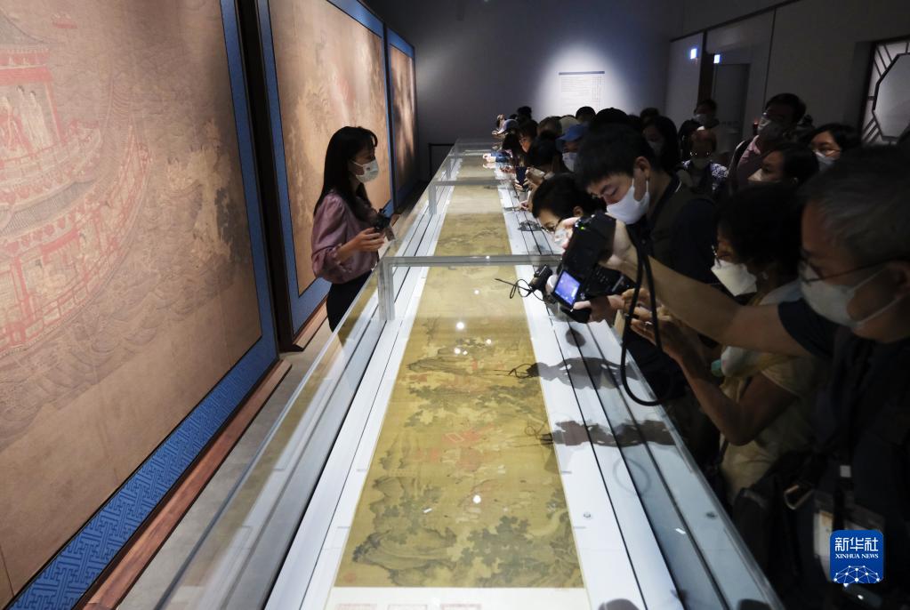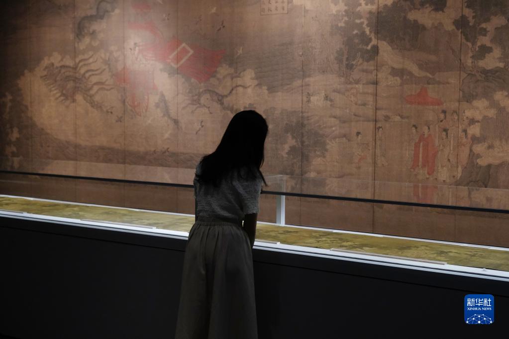 9月7日,在香港故宮文化博物館,觀眾在參觀《洛神賦全圖》(南宋摹本)。(新華社記者 王申 攝)