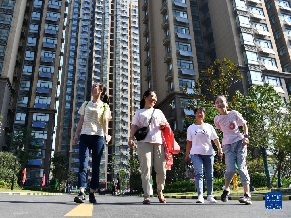 安徽省合肥市包河區同安街道甘棠苑小區回遷居民在小區內散步(2020年9月5日攝)。(新華社記者 劉軍喜 攝)