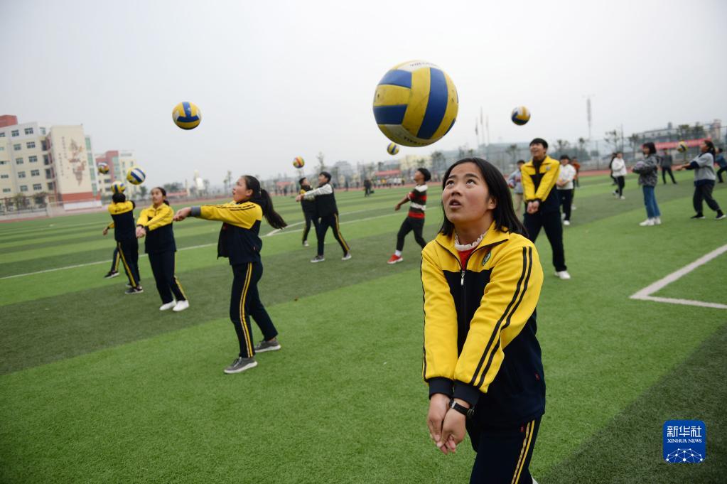 貴州省黔東南苗族侗族自治州榕江縣第四中學學生在上體育課(2018年12月13日攝)。(新華社記者 楊楹 攝)
