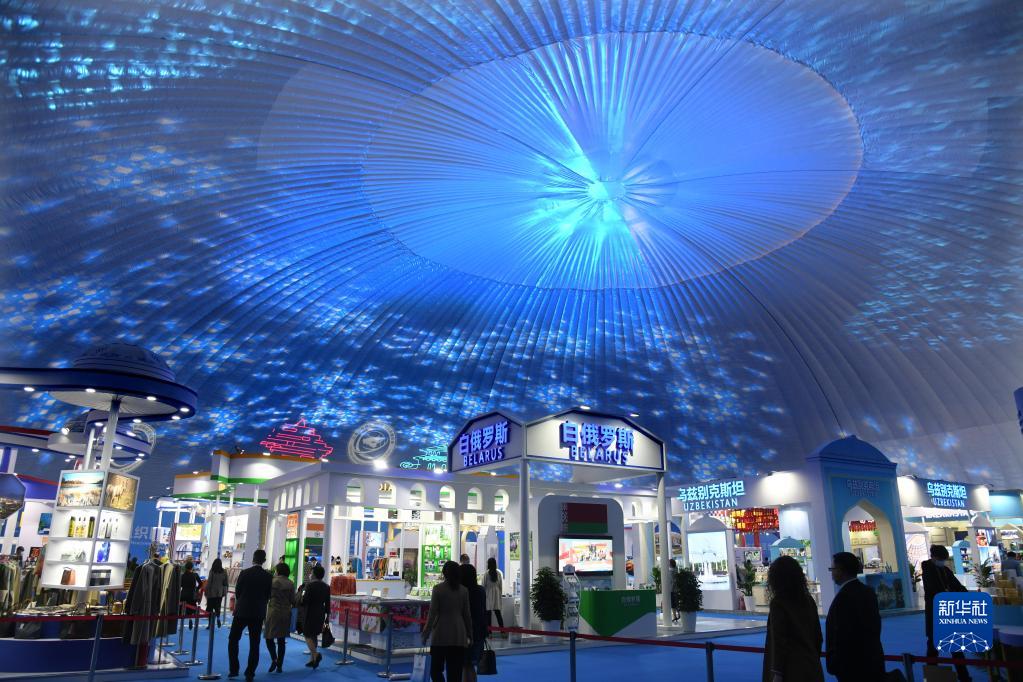 與會嘉賓在各國形象館展區參觀(2021年4月26日攝)。當日,2021上海合作組織國際投資貿易博覽會暨上海合作組織地方經貿合作青島論壇在青島開幕。(新華社記者 李紫恒 攝)