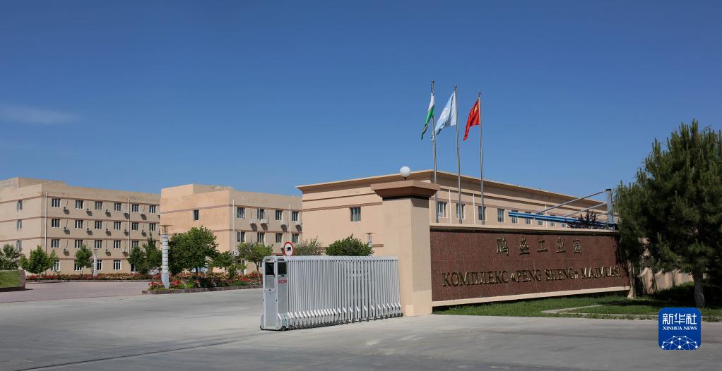 這是2018年5月8日拍攝的烏茲別克斯坦鵬盛工業園入口。鵬盛工業園是中國民營企業直接在烏投資建立的首個中烏合資工業園區。(新華社記者 周良 攝)