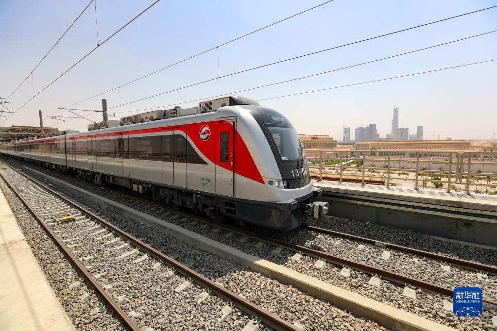 由中國企業承建的埃及齋月十日城輕軌鐵路通車試運行(2022年7月3日攝)。(新華社記者 隋先凱 攝)