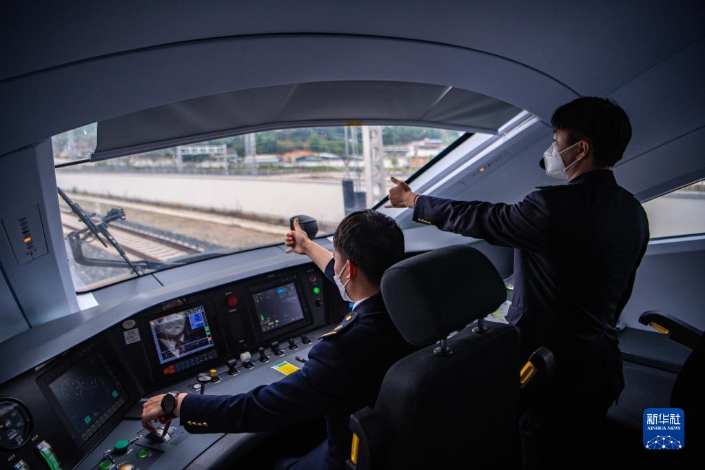 列車司機駕駛復興號列車行駛在中老鐵路上(2022年6月1日攝)。(新華社記者 江文耀 攝)