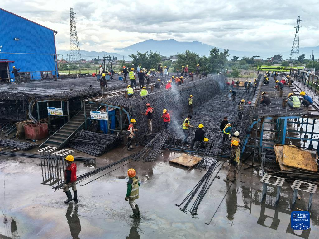 工人在印度尼西亞雅萬高鐵4號梁場作業(2022年5月1日攝)。(新華社發 王增堃 攝)