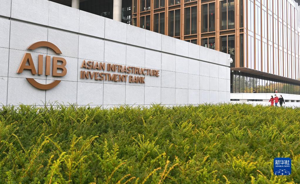 這是亞洲基礎設施投資銀行(亞投行)標誌(2021年10月25日攝)。(新華社記者 李賀 攝)