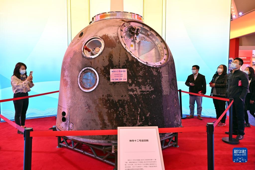 10月8日,觀眾參觀拍攝神舟十二號返回艙。(新華社記者 李鑫 攝)