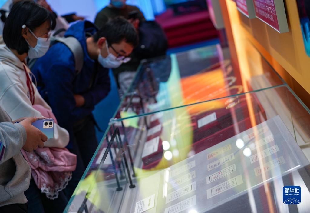 10月9日,觀眾在「奮進新時代」主題成就展上參觀山西省太原市89歲老人韓玉峰收藏的12張選民證。(新華社記者陳曄華攝)