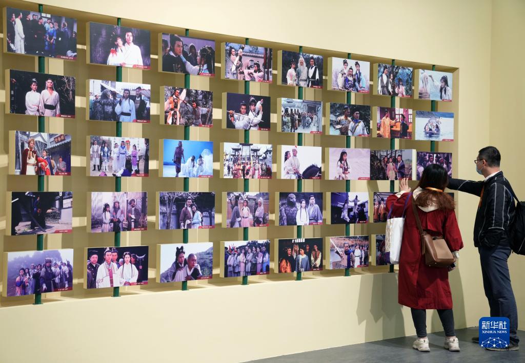 10月28日,觀眾在參觀由金庸武俠小説改編的影視劇劇照。(新華社記者 劉穎 攝)