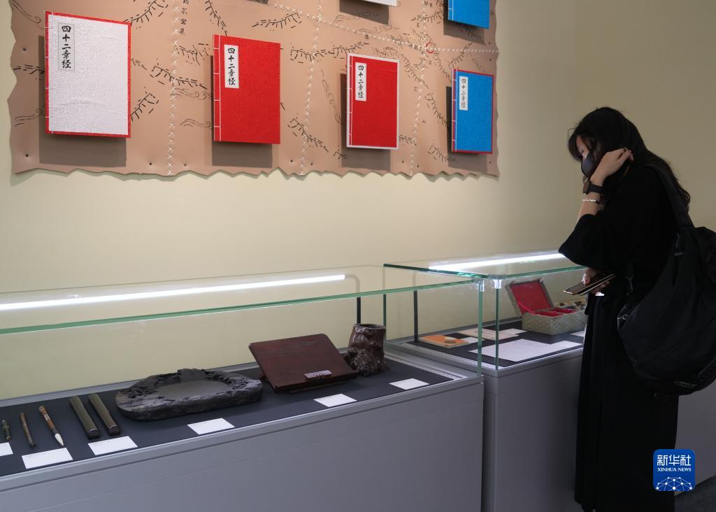 10月28日,觀眾在參觀金庸的文房四寶等展品。(新華社記者 劉穎 攝)