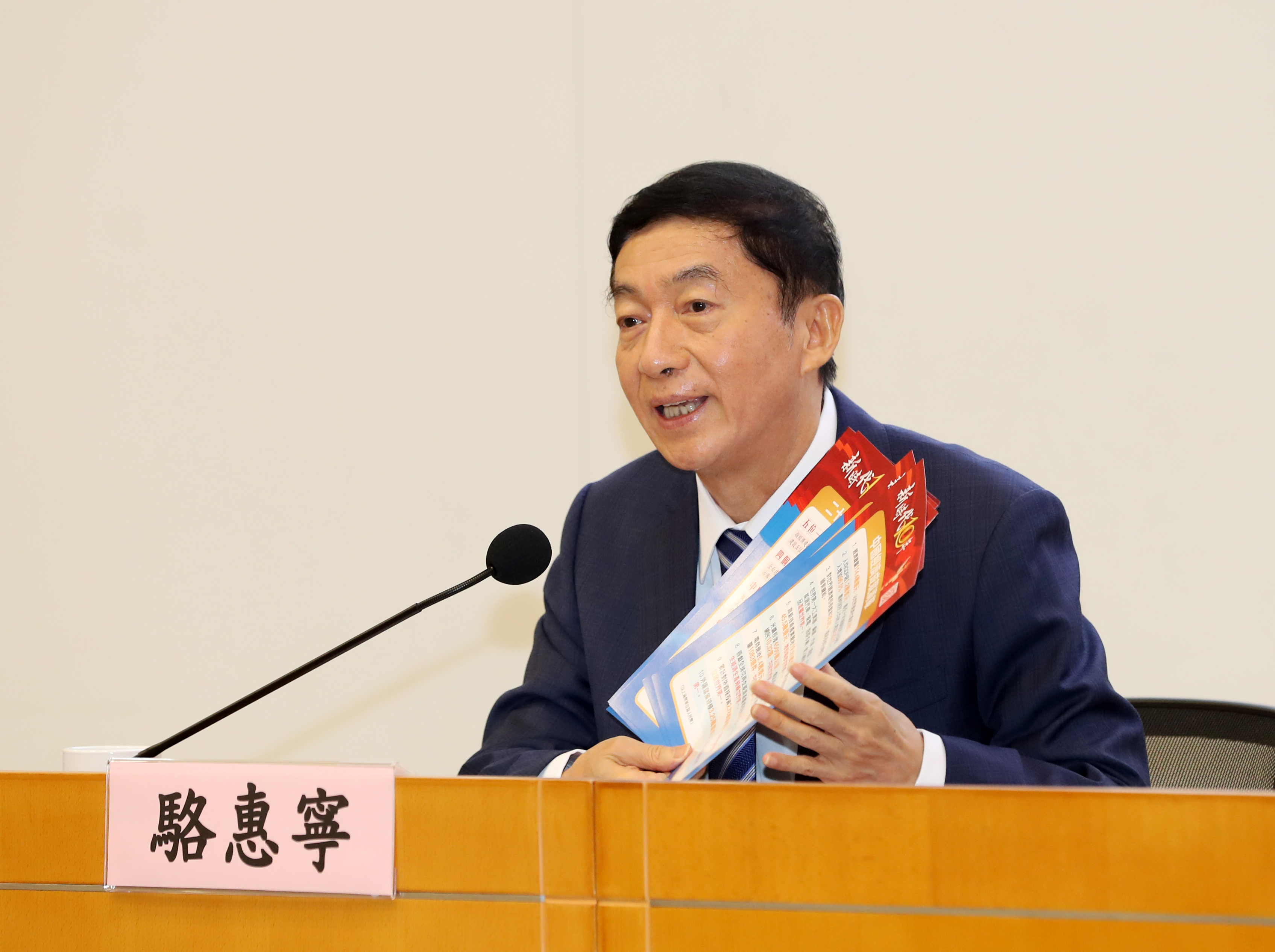 駱惠寧指出,二十大報告強調我國發展面臨新的戰略機遇。面對國家新征程與香港新階段相交匯的時代背景,只有增強歷史主動,善於把握機遇,才能贏得未來。他引導大家在世界百年未有之大變局中把握機遇,中國的發展正深刻影響世界格局演變,世界越來越離不開中國,香港背靠祖國、聯通世界的獨特優勢只會更凸顯;在融入和服務全面建設現代化國家進程中把握機遇,全球發展的最大機遇在中國,香港發展的最大機遇在內地,找到香港所長與國家所需的匯合點,香港自身發展與貢獻國家的舞台就會更加寬廣;在國家對港澳重大方針和部署中把握機遇,「一國兩制」是香港的最大優勢,中央出台了一系列利港惠民政策,有強大祖國做堅強後盾,這是香港令其他同類型經濟體很羨慕的地方,必將持續為香港帶來巨大的發展紅利。他強調要按照習近平總書記對特區提出的「四點希望」,精心研究發掘機遇、積極行動搶抓機遇、改革創新塑造機遇,不斷開創香港發展新局面。