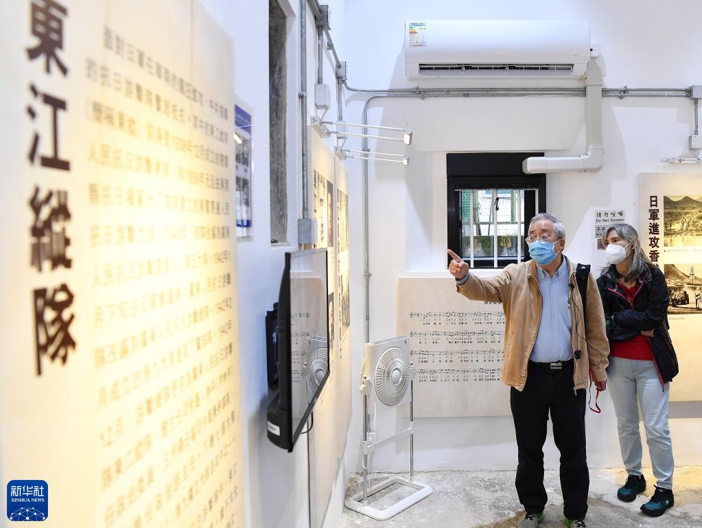 11月26日,香港嶺南大學高級研究員、香港地方志中心事務顧問劉蜀永(左)在香港沙頭角抗戰紀念館講解。新華社記者 陳鐸 攝