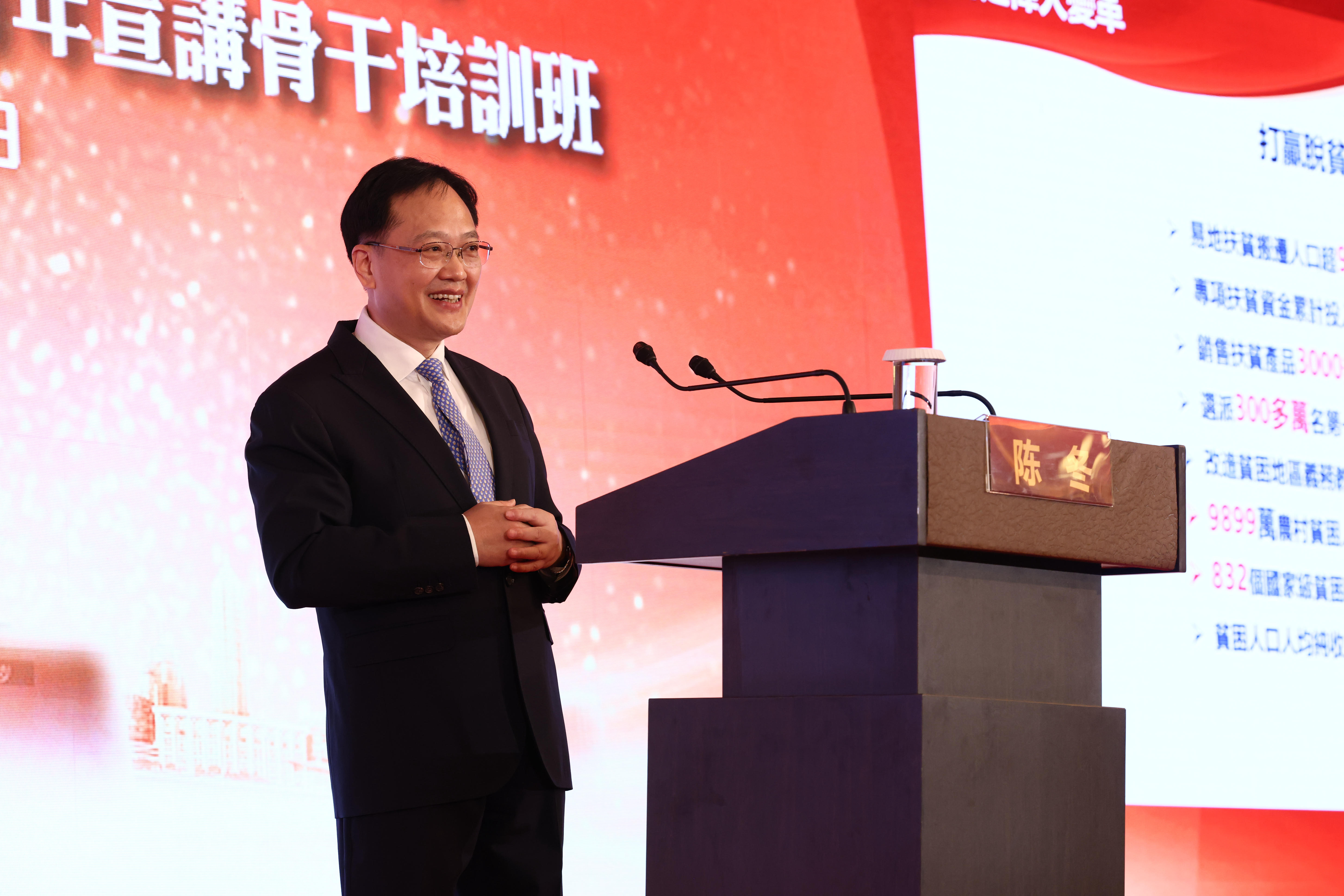 本網訊 12月10日,中央政府駐港聯絡辦副主任陳冬出席黨的二十大精神香港青年宣講骨幹培訓班結業禮,以「香港青年如何宣講好黨的二十大精神」為題,向現場近300名青年代表進行宣講。
