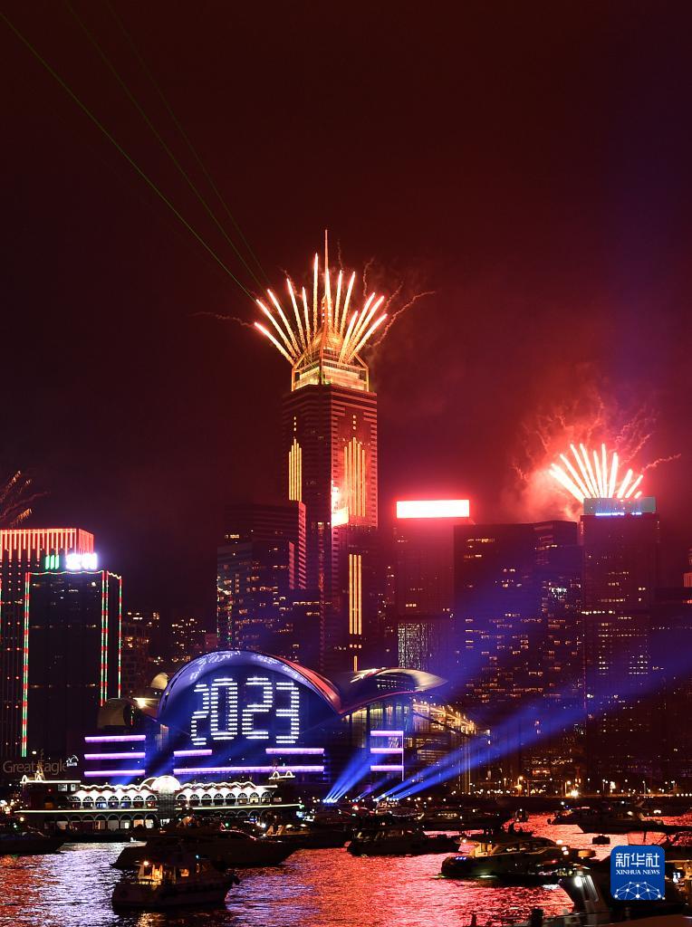 12月31日晚,香港地標維多利亞港變身舞台,上演集文化藝術、體育、創意動畫與煙火、光影效果等不同元素於一身的多媒體匯演,與香港市民共同迎接2023年到來。