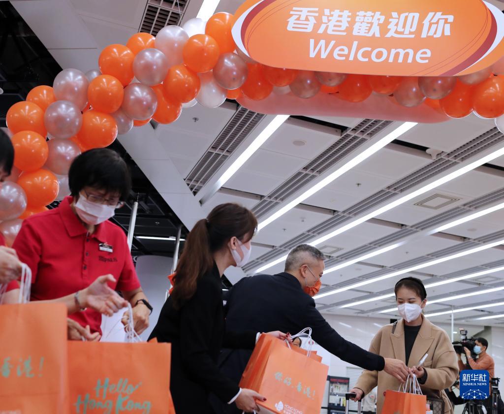 當天,在香港西九龍站,曾經冷清的車站變得熱鬧起來,不少旅客拖着沉甸甸的行李箱,雖然戴着口罩,但從眉眼中仍能看出他們踏上旅途的喜悅。