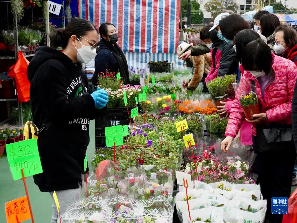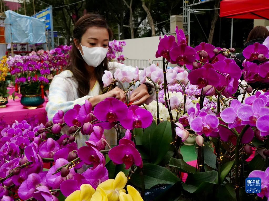 1月16日,在維多利亞公園年宵花市,顧客在花攤前挑選年花。(新華社記者 褚萌萌 攝)